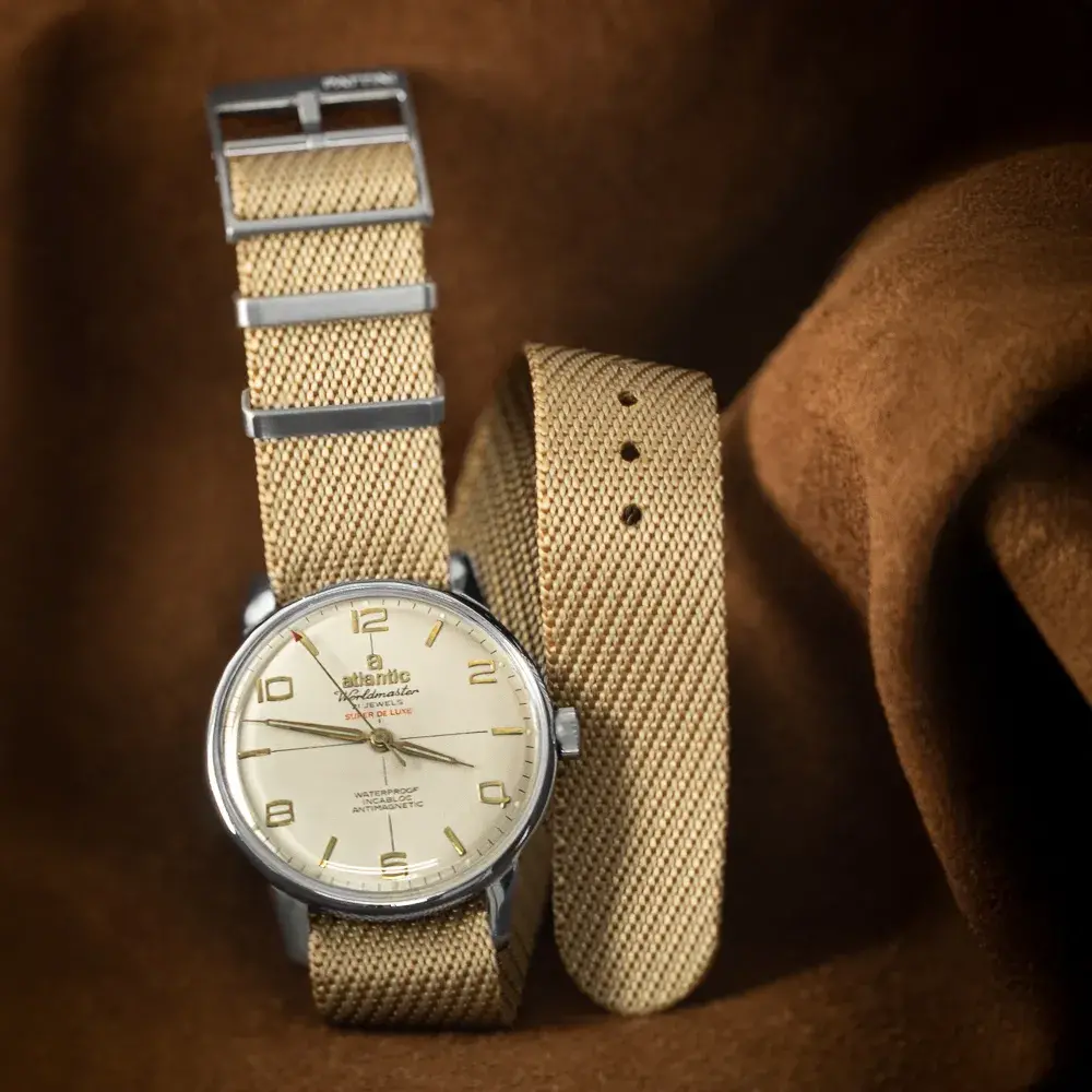 We present to you our elegant beige NATO strap, made from the highest quality soft and durable nylon. This strap will not only provide you with unparalleled comfort but will also enhance your personal style.