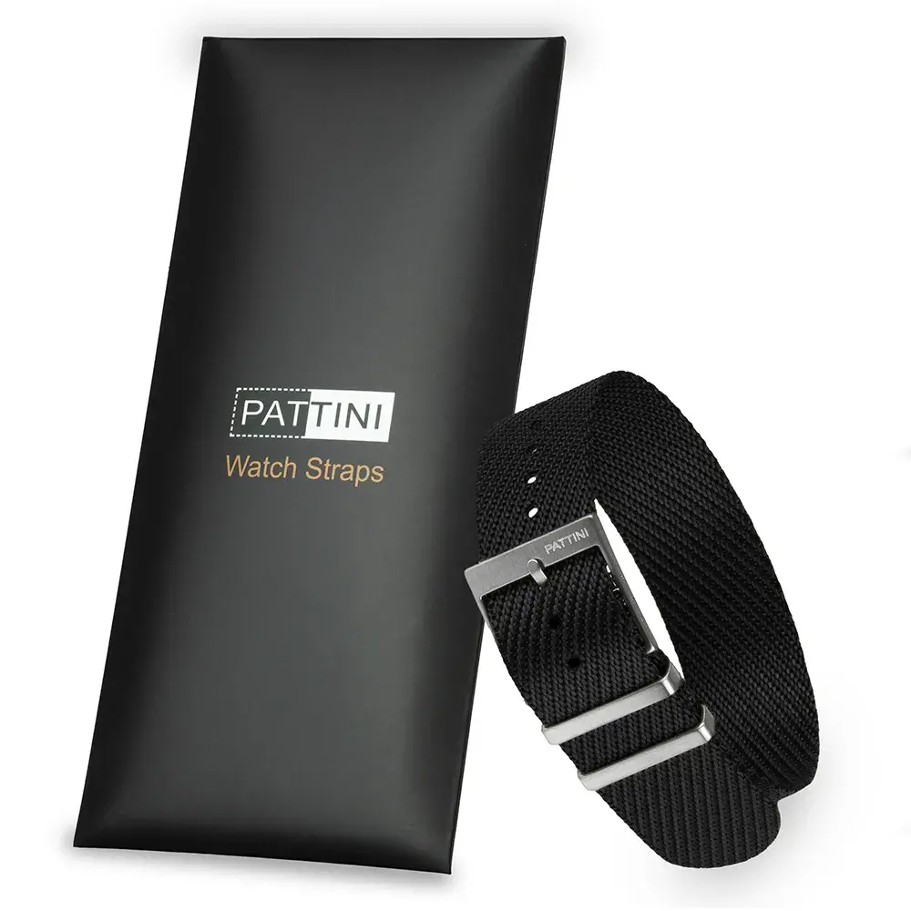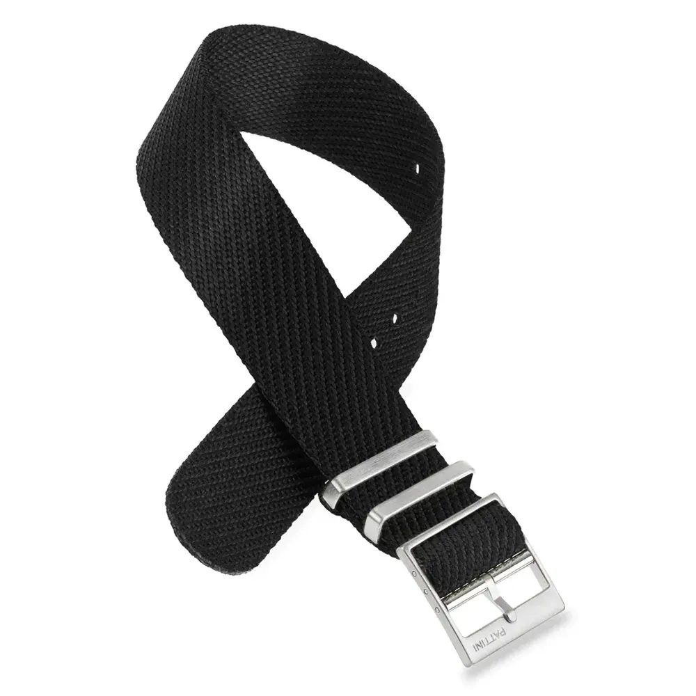 Discover our black NATO strap that combines elegance with functionality, perfect for those who value style and comfort. Made from high-quality materials and available in sizes 18 mm, 20 mm, and 22 mm, it ensures a perfect fit for various watches. Lightweight, with a thickness of 1.2 mm, it guarantees freedom of movement. The length of 285 mm and adjustable wrist circumference (140-210 mm) offer excellent fit. The solid buckle made of brushed stainless steel ensures durability, while its waterproofness increases practicality. Choose our strap to add class and functionality to your watch.