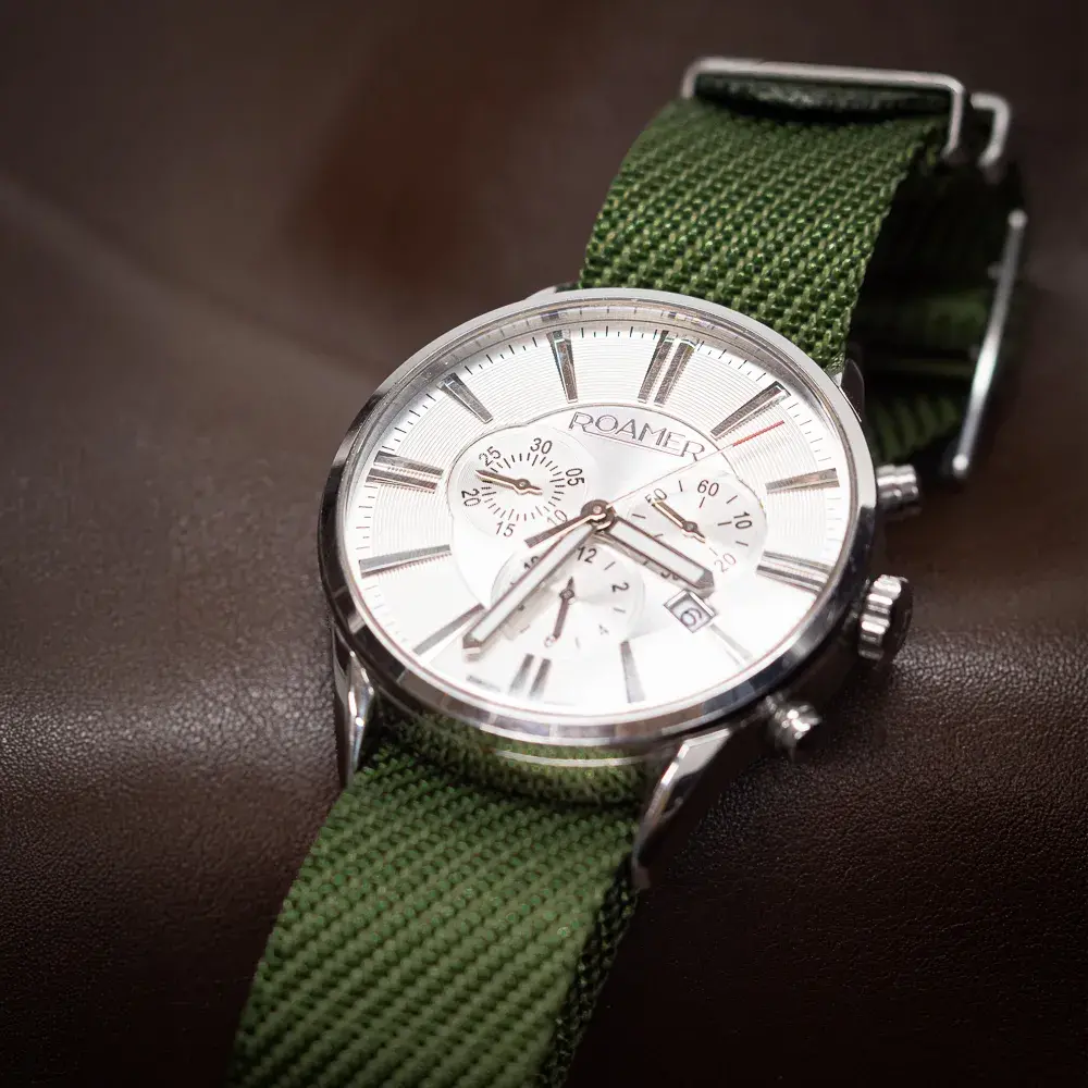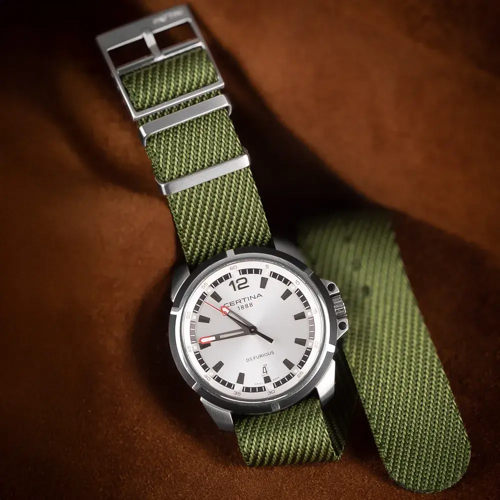 This universal green NATO strap is an excellent choice for those who value comfort, style, and functionality. Add a touch of freshness and character to your watch with our strap.